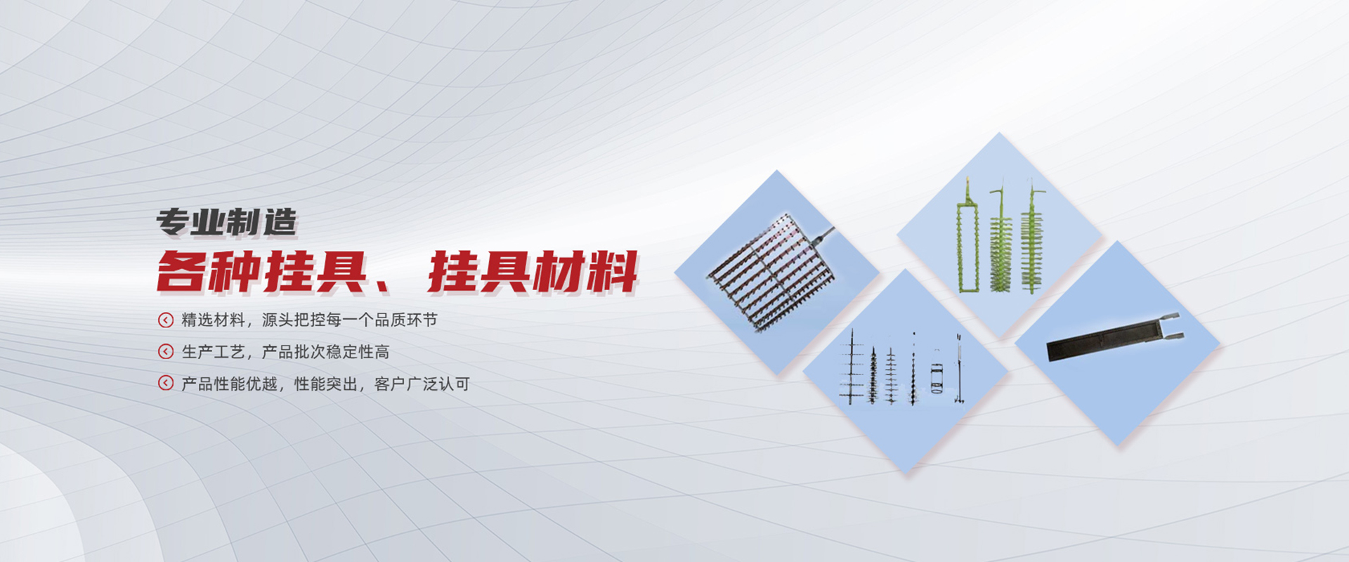 本公司引进香港生产电镀挂具技术及生产工艺,积累多年生产挂具的实践经验。专业精制各种挂具。